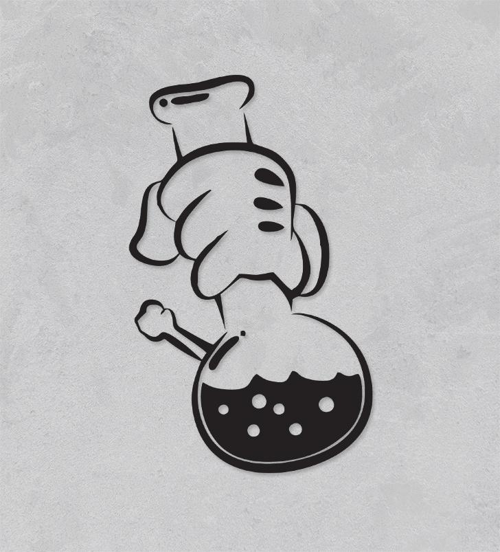 Ko se znan risani lik sprosti po svoje! Ta nalepka s stilizirano roko in bučnim laboratorijskim pripomočkom (khm…) je duhovita poslastica za vse, ki cenijo dozo risane norosti in chill vibro.